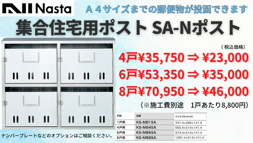たくさんのメーカーが集合住宅用のポストを出していますが「キョーワナスタ」や「田島メタルワーク」などが有名で実績も多いです。